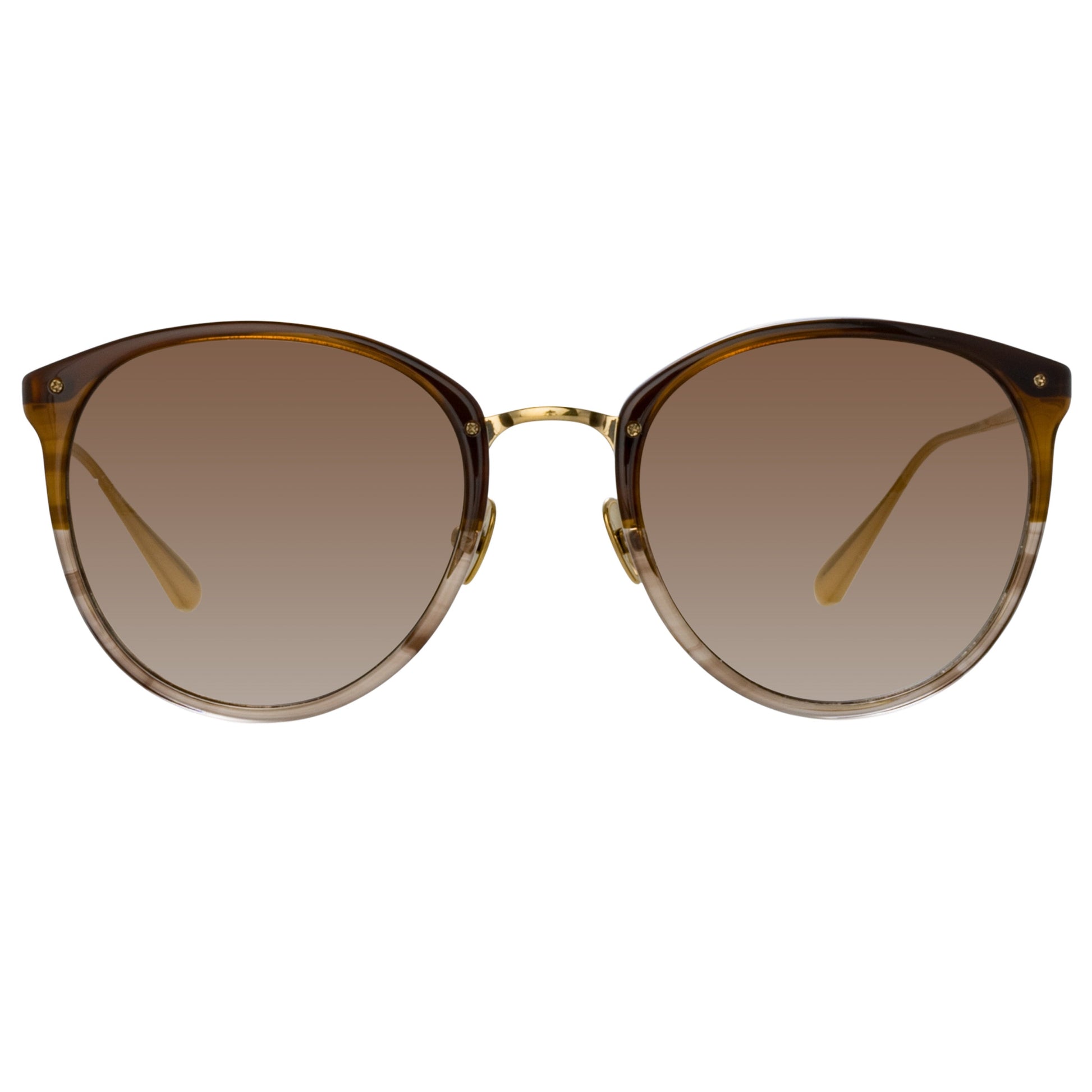 Linda Farrow Calthorpe Oval Sunglasses in Caramel Horn
