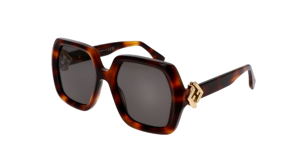 Oversized square FF Diamonds glasses in Havana acetate. Temples with functional FF Diamonds hinges in gold-coloured metal. Grey lenses.